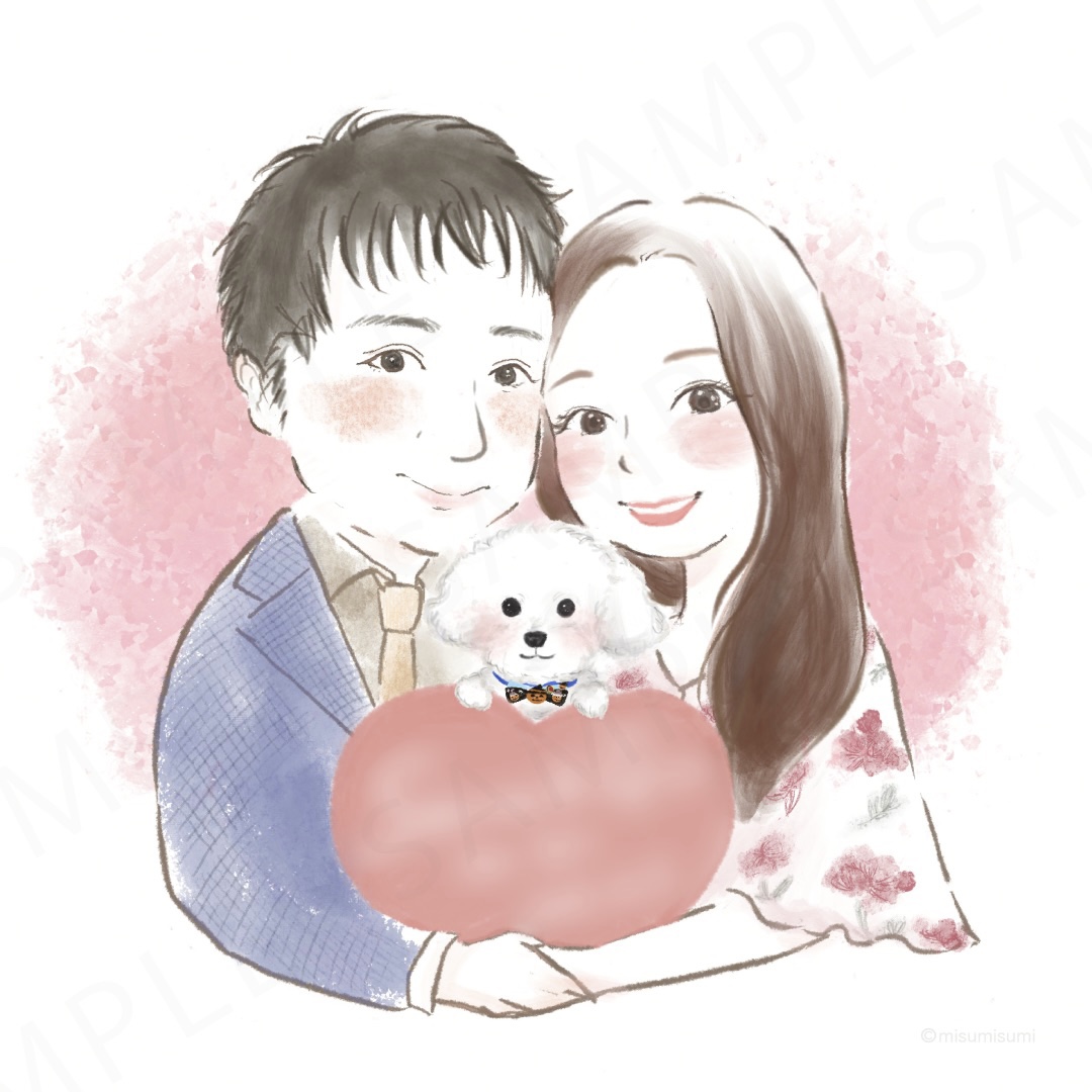 「友人の結婚祝いに似顔絵をプレゼントしたい」とご依頼をいただきました。